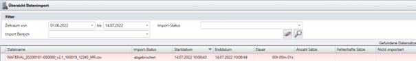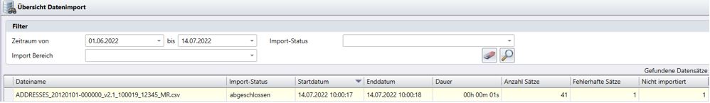 Eine Warnung (in Gelb markiert), sofern einige Datensätze innerhalb der Datei nicht validiert werden konnten (siehe Abbildung 1).