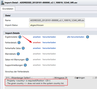 Abbildung 3: Datenimport -> Fehlerdetails